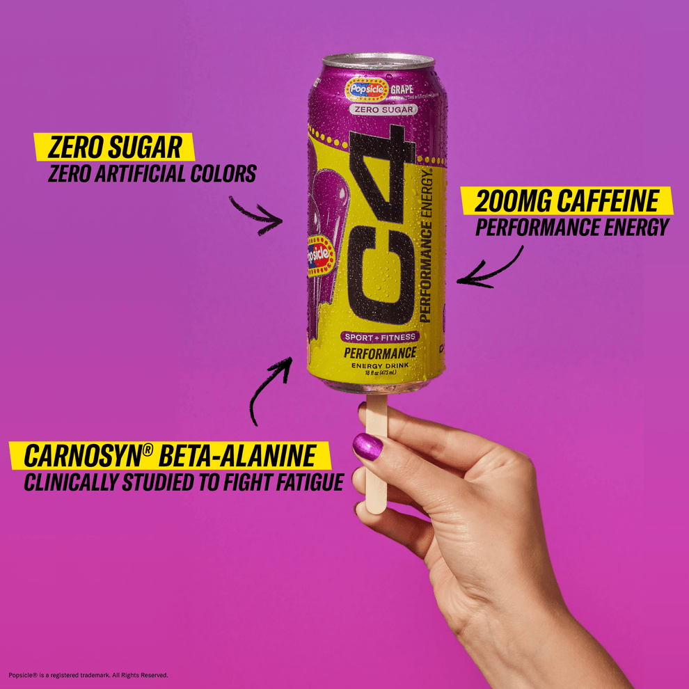 C4 Performance Energy® is infused with the heritage and technology of America's Most Explosive Performance Energy Brand. Powered by 200mg of caffeine, you’ll be burstin’ with explosive energy to elevate your performance. Add the clinically studied CarnoSyn® Beta-Alanine and superfood extract, BetaPower® Betaine, and you can count on refreshing cellular hydration and endurance with every sip!