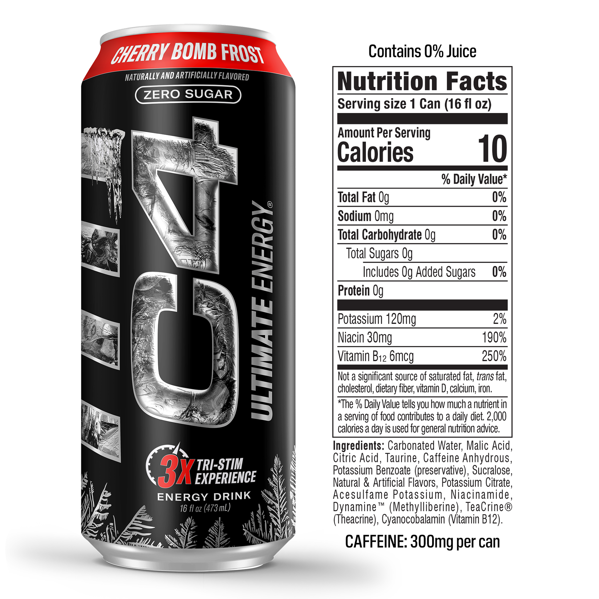 C4 Ultimate Frost pushes supercharged energy to the icy extreme. With a blend of 300mg caffeine, TeaCrine®, and Dynamine™ in every can, it's a Tri-Stim Experience that has absolutely no chill. C4 Ultimate Frost packs crisp, fruity, and refreshing flavor with ZERO grams of sugar, artificial colors, or dyes. And thanks to the color changing can, you'll know exactly when C4 Ultimate Frost is COLD AF ™ and ready for action.