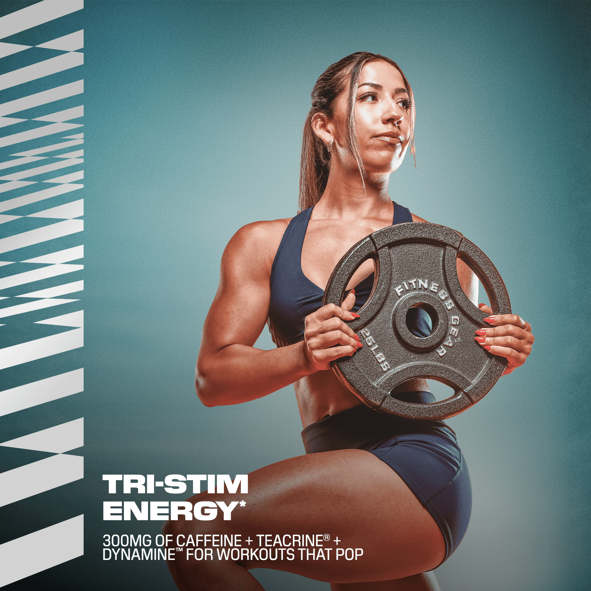 - TRI-STIM ENERGY: Have the energy to hit harder with our potent tri-stim blend of 300mg Caffeine + TeaCrine® + Dynamine™.*