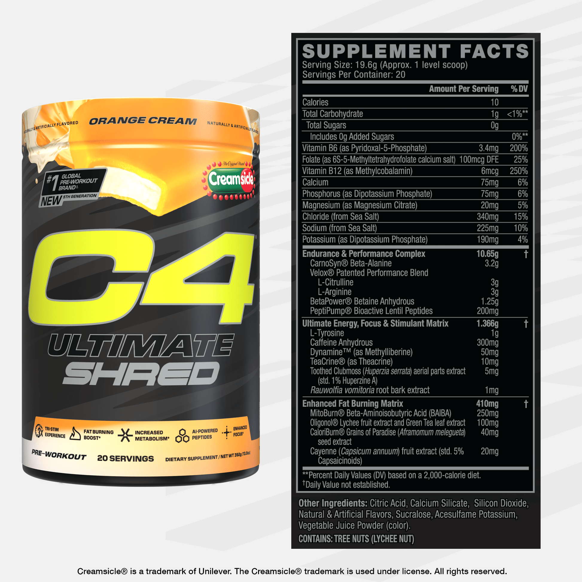 Hit harder than every while building a leaner physique with C4 Ultimate Shred x CREAMSICLE®.*